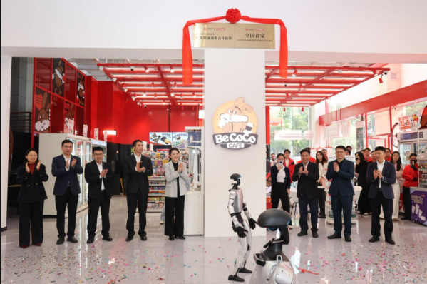 广东联通副总经理闻屏、美宜佳控股董事长张国衡共同为示范店剪彩揭牌,见证智慧零售新业态的全新启幕。本次活动以“智联零售云启新篇”为核心主题,现场亮相无人机互动、人形机器人导览等前沿科技应用,直观展现广东联通新一代信息技术为实体零售注入的创新活力,吸引众多市民驻足体验、打卡互动,沉浸式感受智慧零售的科技魅力与服务温度。